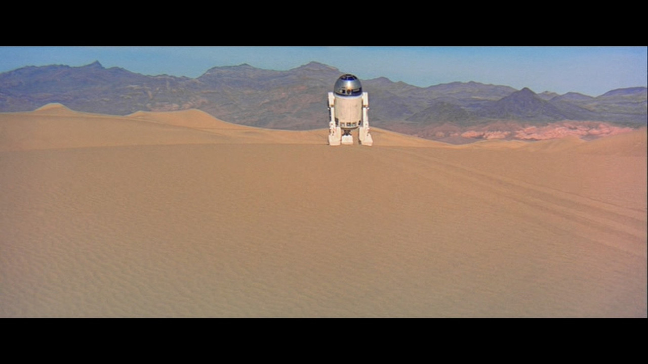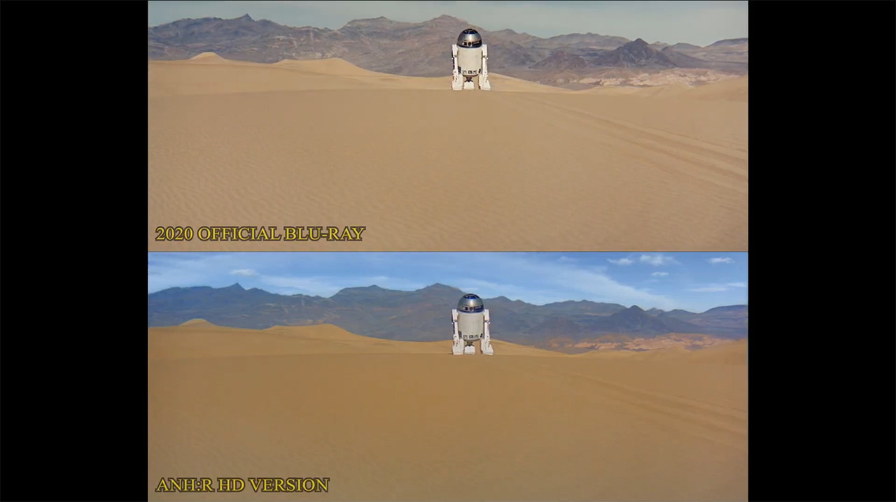 There is another shot I am hoping to bring attention to and it’s the one with R2 heading to the mountains immediately after parting with 3PO. Does anyone else notice how the mountains ahead appear to be less detailed in the Revisited:HD than the Official version? Here’s an image: