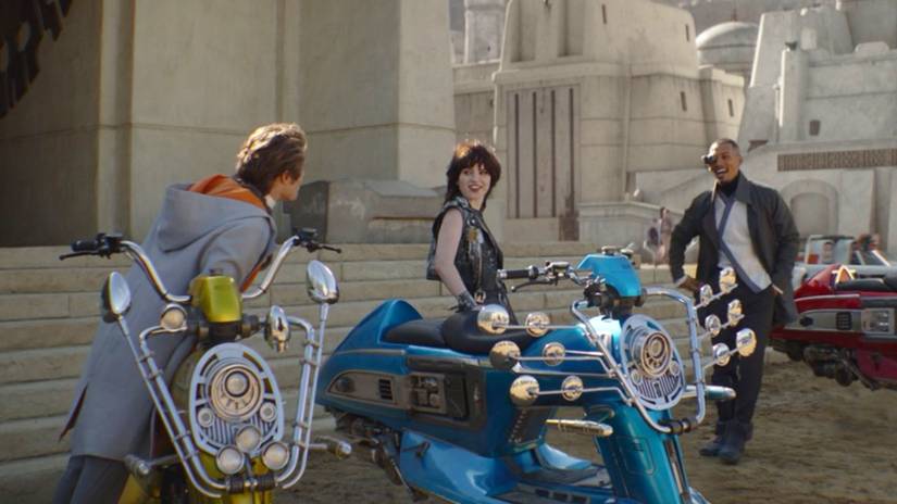 I don’t mind Joan Jett in Star Wars, but the other costumes look terrible, and the bikes look like nothing Star Wars. The blue bike is especially gaudy looking.