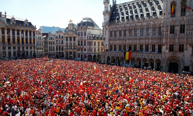 Belgian fans gather to welcome home their team…