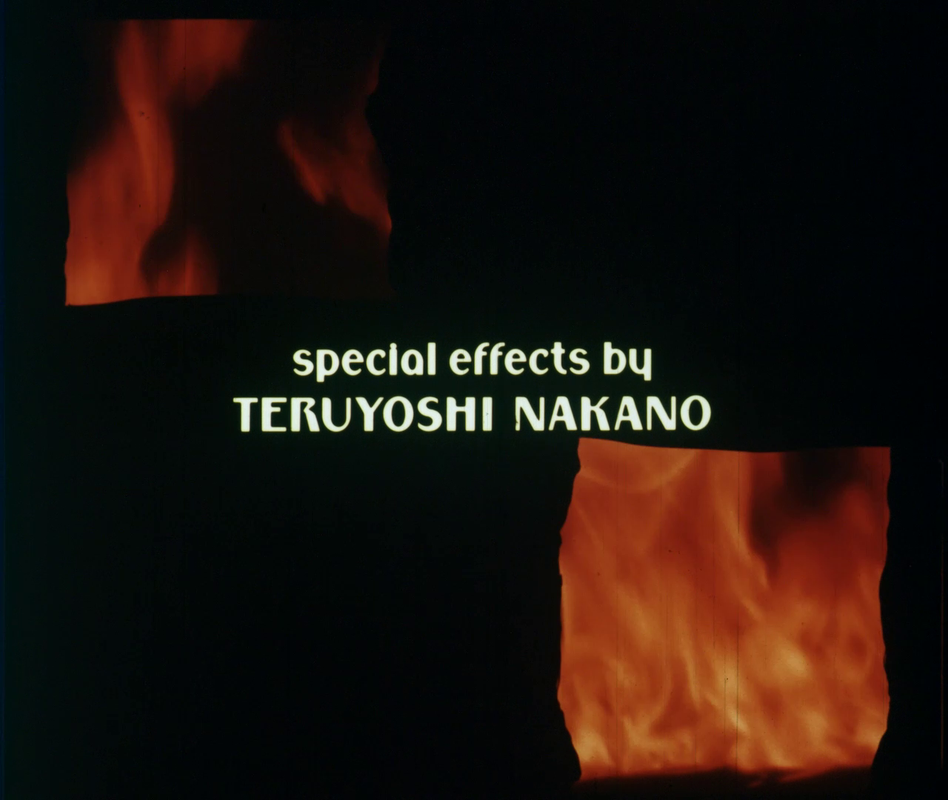 The borders of the textless Toho credits are visible through the title cutout:
